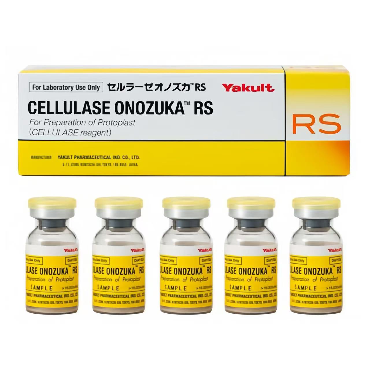 Cellulase Onozuka RS:同样来源于绿色木霉,是 Cellulase Onozuka R-10 的突变株产品,含有相当高的天然纤维素降解活性,所含的木聚糖酶活性比 Cellulase Onozuka R-10 约高 3 倍,应用更为广泛。其酶活性大于 16,000u/g,最佳作用温度为 40-50℃,最佳 pH 为 5.0-6.0。包装有 10g 棕色瓶装和小瓶分装(5 小瓶 / 盒,每小瓶相当于 1g 常规产品)两种。