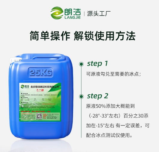 广泛用于工业锅炉、家用锅炉、中央空调设备、太阳能、地暖管道、冷库设备等,可作为防冻液、发动机冷却液的原料,也可用作合成纤维、化妆品的原料,并可作为染料、油墨等的溶剂。